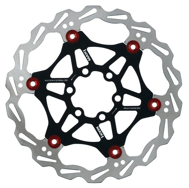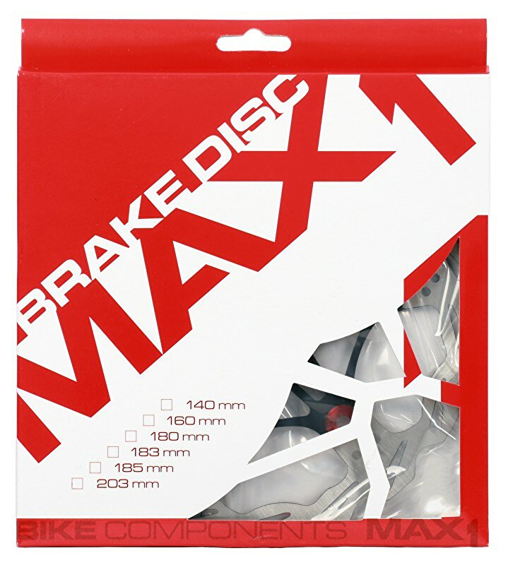 Brzdový kotouč MAX1 160mm s Alu unašečem.Kotouč je vyroben z vysoce tepelně odolné oceli 410 STAINLESS STEEL, unašeč z AL7075.Povrchová úprava 42HRC.- Tvar kotouče zajišťuje velice dobré chlazení- Ultralight design- Vysoká účinnost za všech podmínek – Výborná tvarová stálost díky konstrukci s Alu unašečem- Lze použít na všechny typy brzdových destiček (organické, sintrované, atd…)- Hmotnost: 106g- Balení obsahuje šrouby- Tloušťka kotouče: 2 mm