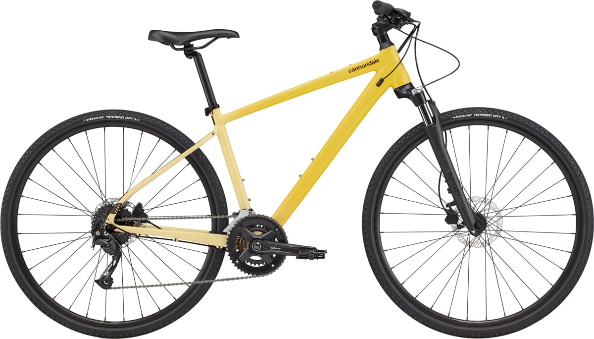 Na rámu najdeme i prvky SAVE, které výrazně zlepšují parametr pohodlí při jízdě. Na kole najdeme pevnou vidlici, která je oproti odpružené vidlici lehčí a kolo je tak živější na pevném povrchu v kopcích. Kolo je osazeno díly Shimano Altus, které se vyznačují dlouhou životností a spolehlivostí. Pokud hledáte kolo i na delší vyjížďky po silnicích a cyklostezkách, pak je pro vás Cannondale Quick tou pravou volbou.