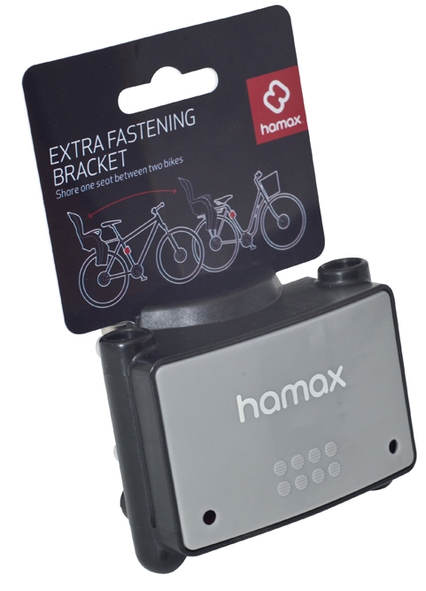 držák sedačky HAMAX UNI KISS/SLEEPY/SMILEY/SIESTA/CARESSpro montáž na další kolo – možnost přemisťování sedačkypro kola s průměrem trubky rámu 28-40 mmbez možnosti uzamknutí sedačky v zámku – neuzamykací