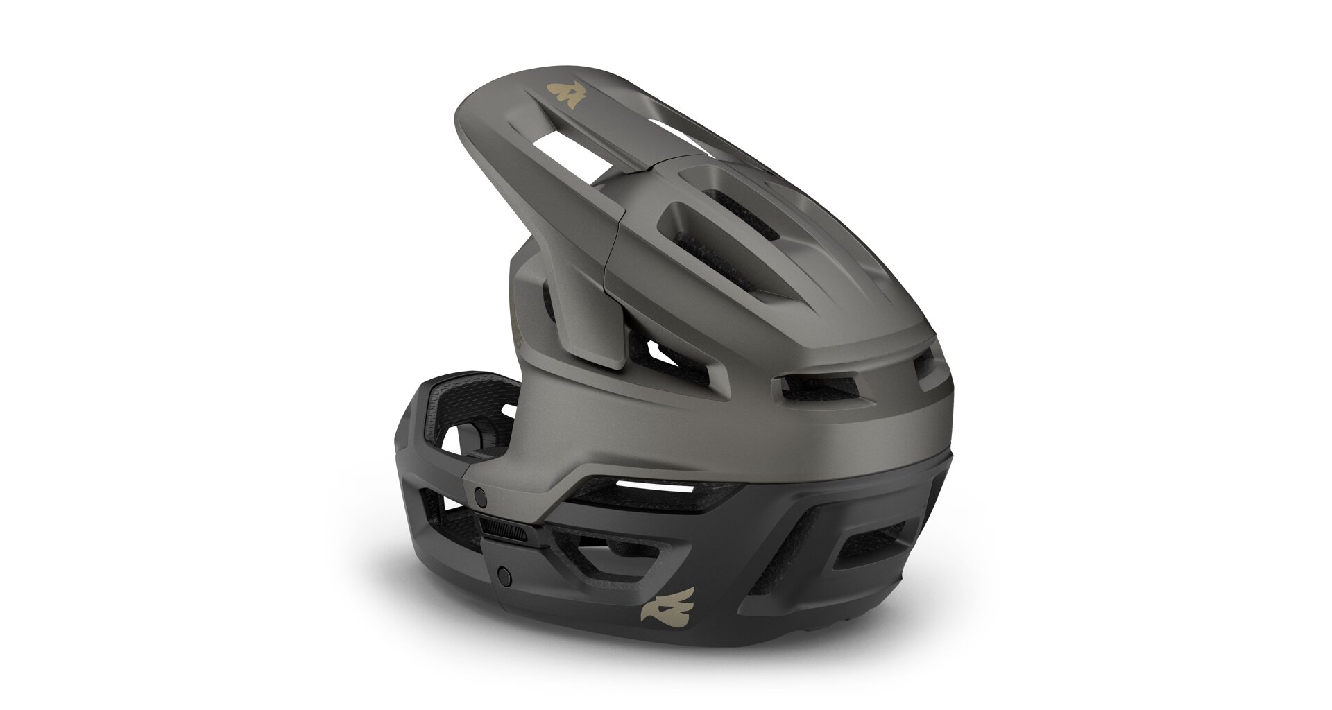 Integrovaný pevný podbradník pro úplnou ochranu obličeje