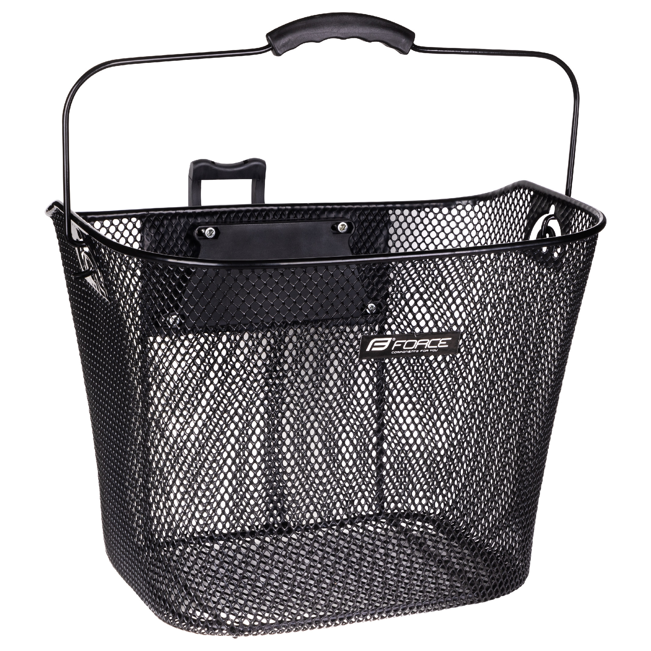 koš na řídítka s plastovým držákem KLICK 31,8 mmdélka: 250 mm x šířka: 320 mm x výška: 260 mmmaximální nosnost: 5 kgmateriál: Fe železo, hustá oka, černýhmotnost: 1089 g
