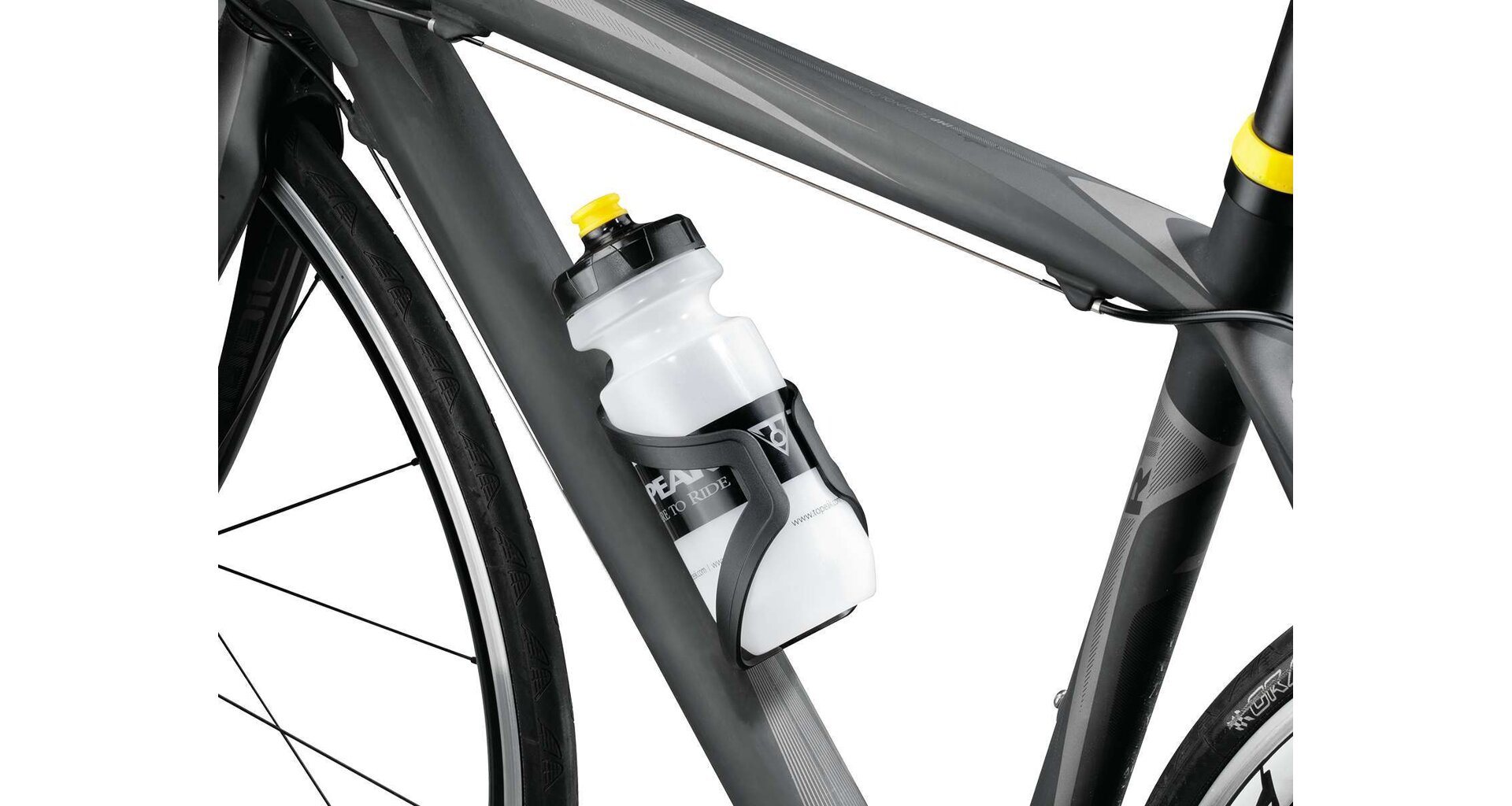 Bezpečné sevření: Ergonomický tvar zajišťuje, že standardní cyklistická láhev nevypadne ani při přejezdu nerovností.