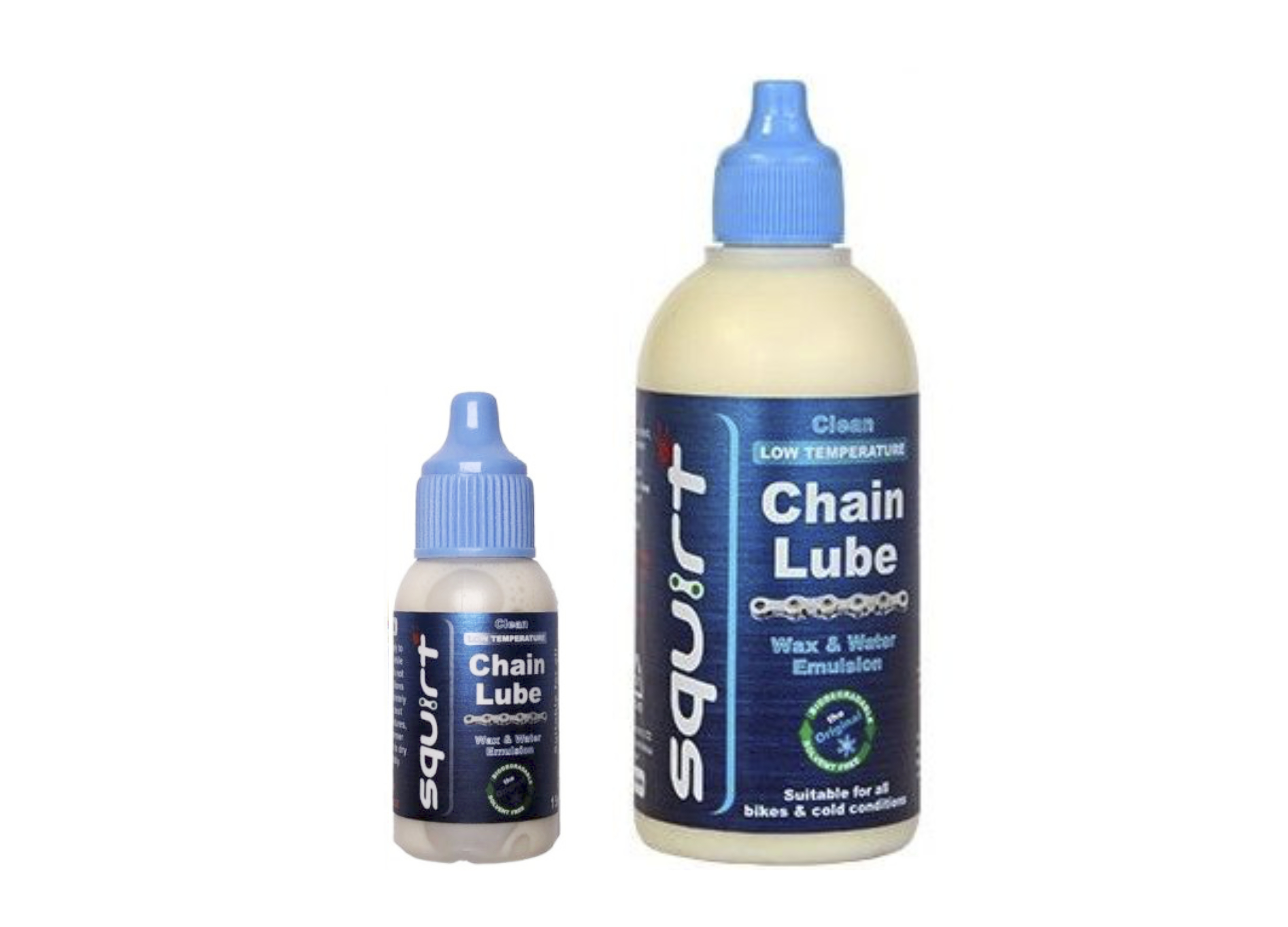 Squirt mazivo Low-Temperature je unikátní mazivo na řetěz na bázi vosku speciálně vyvinuté do chladných podmínek. Je řidčí kvůli snaššímu nanášení za nízkých teplot. Po nanesení vytváří na řetězu tenký film a neváže na sebe nečistoty. Řetěz tak zůstává čistý po dlouhou dobu, stačí pouze nanést další vosk. To prodlužuje životnost řetězu. Navíc je 100% biologicky rozložitelné a dostupné.