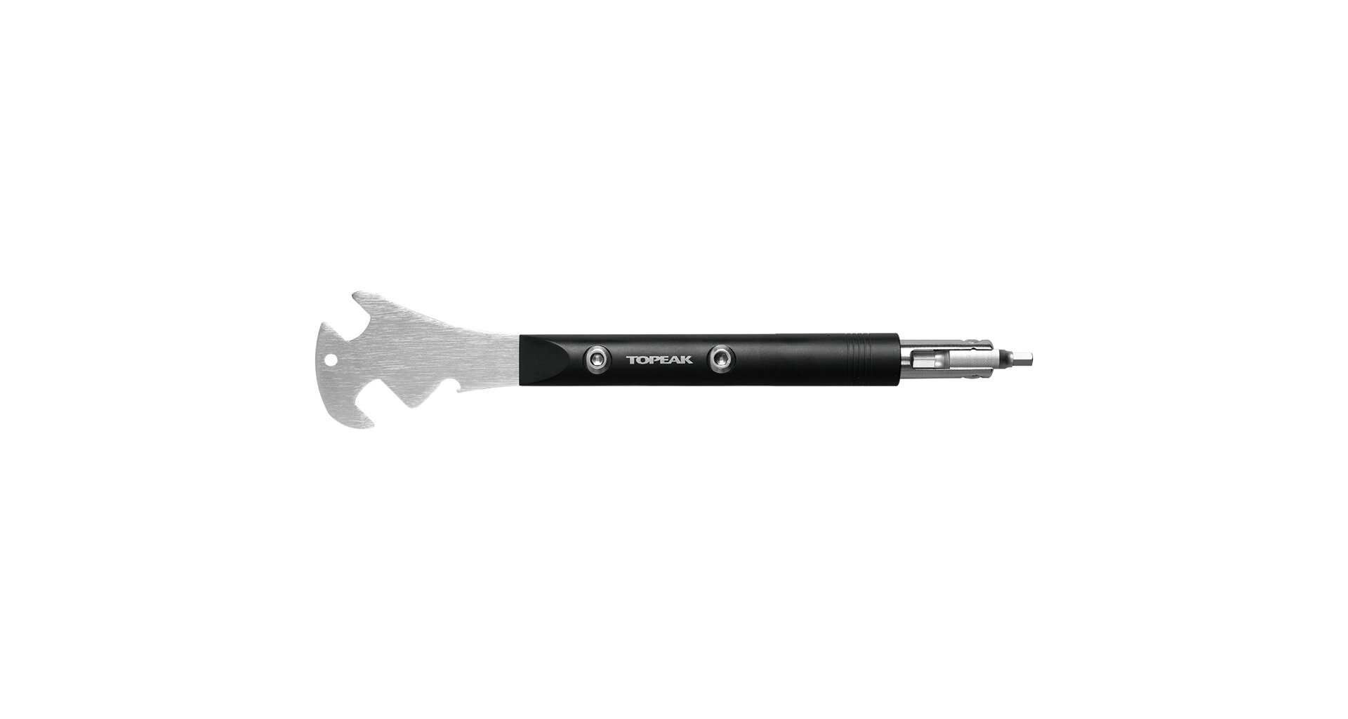 Profesionální síla a inteligentní design v jednom. Topeak Pedalbar Pro představuje novou úroveň v servisu pedálů. Zapomeňte na hledání několika různých klíčů – tento nástroj „vše v jednom“ pokryje 100 % vašich potřeb. Základem je vysoce pevná rukojeť z kovaného hliníku, která nabízí vynikající ergonomii a páku potřebnou pro uvolnění pedálů s vysokým utahovacím momentem. Dva 15mm otevřené klíče s různými sklony zajišťují, že najdete ideální pozici pro práci v jakémkoliv úhlu kliky. Pro moderní pedály, které se utahují z vnitřní strany kliky, je Pedalbar Pro vybaven speciálním odnímatelným nástavcem s 6mm a 8mm inbusem. Tento nástavec lze v rukojeti otáčet, což umožňuje pracovat s maximální efektivitou bez ohledu na prostorové omezení.
