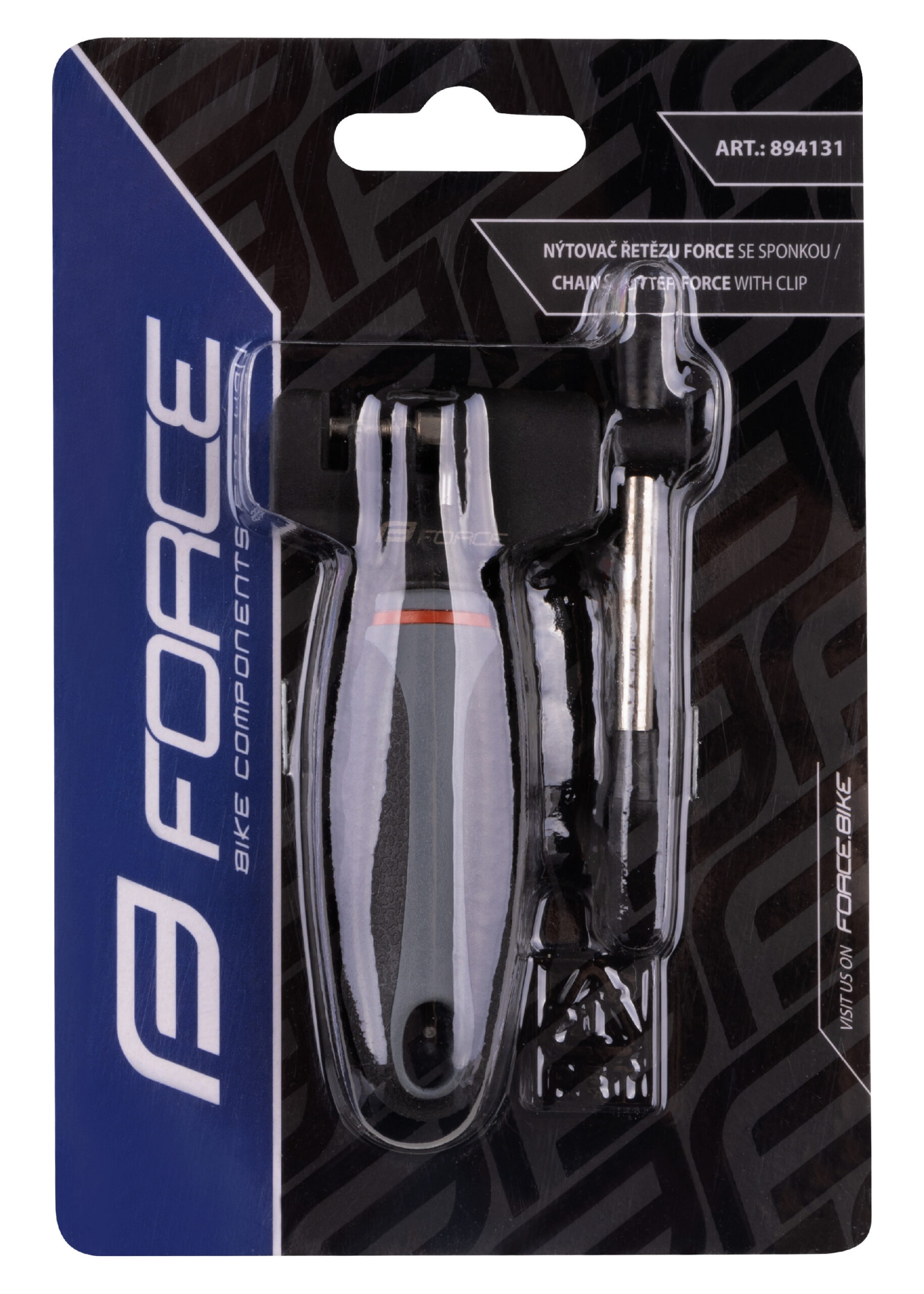 kapesní nýtovač pro 6 – 11 rychlostní řetězyvčetně sponky řetězu pro snadnou montáž řetězučep je otočný – oboustranně použitelnýmožnost dokoupit náhradní čep kód 8941312materiál: ocel, pogumovaná rukojeť s dírou pro zavěšenídélka: 85 mm, šířka: 50 mmhmotnost: 90 gbaleno v blistru FORCE
