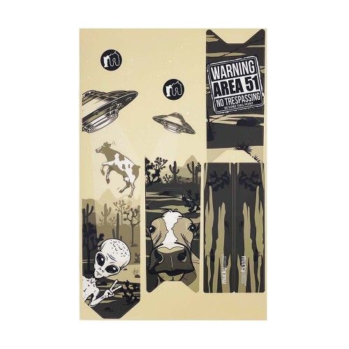 Sada ochranných samolepek pro celkovou ochranu kola před poškrábáním – MUCKYNUTZ – Frame Skinz Area 51 designChraňte rám kola před poškozením. Vylepšete design/obnovte vzhled kola. Prostě tunning pro Vaše kolo:-)Jde o další výrobek pod taktovkou MUCKYNUTZ a mezi jeho hlavní výhody patří:1. Perfektně vyvážený, vysoce výkonný a důvtipný polep, účinná ochrana vašeho kola proti otěru , poškrábání i při případném pádu z kola2. Snadná instalace i demontáž3. Univerzální použitelnost pro všechny druhy cyklo rámů – uhlíkové i slitinové a další4. Vysoce čirý materiál odolný otěru s vysokou přilnavostí lepidla5. Stylový design co dokáže obnovit vzhled kola k nepoznání6. Navrženo a vyrobeno ve Velké BritániiMožnosti povrchu samolepek/finishing:LesklýObsahuje: 1 x samolepku pro horní/dolní trubku rámu2 x samolepky pro ochranu u řetězu nebo pod sedlovkou8 x samolepek pro horní nebo spodní rám kola2 x samolepky pro kyvnou vidlici4 x samolepky proti oděrkám u vývodu kabelů z rámu nebo kde se lanka dotýkají rámu, proti oděrkám na laku