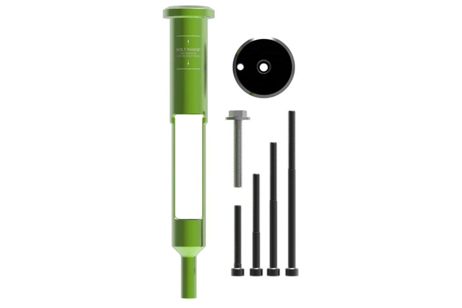 Bezzávitový kontajner pro nářadí EDC V2 do krku vidlice. Nevyžaduje vyřezávání závitu. Současně nahradí vaší rozpěrnou matici pro předepnutí hlavového složení.