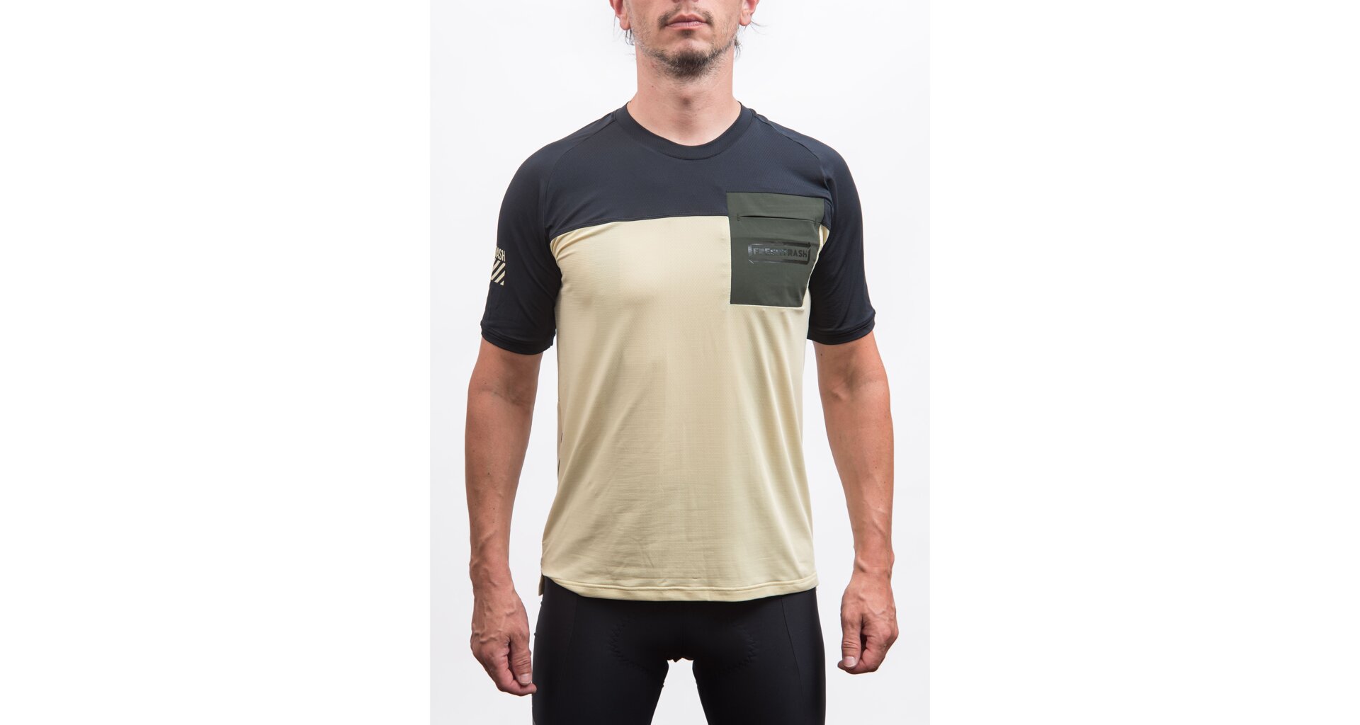 Pánské funkční triko s krátkým rukávem Fresh Trash Horizon pocket – Sand/Black Velikost: M