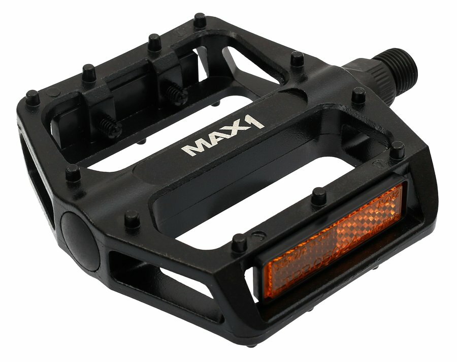 Sportovní platformové pedály MAX1 celohliníkové s odrazkami.kuličková ložiskapiny součástí těla pedáluhmotnost páru: 448 gosa 9/16”, Cr-Morozměr: 120 x 100 mm délka 120mm vč. osybaleno na kartě