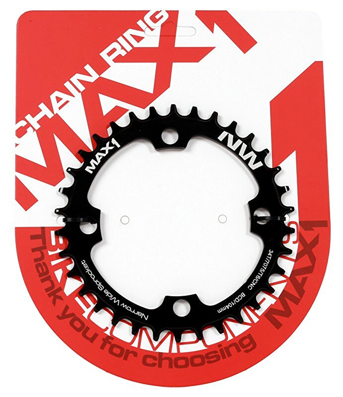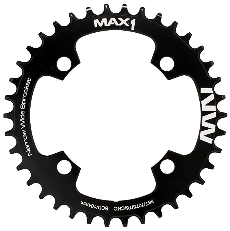 Převodník MAX1 Narrow Wide pro montáž na kliky s roztečí 104mm.Tvar zubů zajišťuje hladký chod a stabilitu řetězu s převody 1×10 nebo 1×11, převodník je tedy možné použít jak na 10-ti, ale i 11-ti rychlostní řazení.Specifikace:- CNC způsob zpracování- Elox povrchová úpravaVíce na: MAX1.CZDovozcem značky MAX1 do ČR je společnost Cyklomax, spol. s r.o.