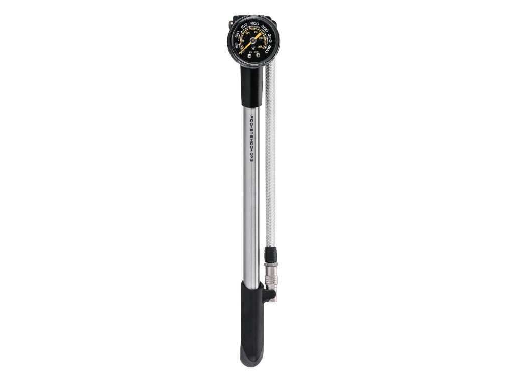 Nekompromisní nástroj pro nastavení podvozku. PocketShock DXG XL posouvá standardy servisního nářadí na vyšší úroveň. Tato XL verze disponuje delším tělem, což znamená větší objem na jeden zdvih a pohodlnější manipulaci při huštění na vysoké tlaky. Zásadním prvkem je flexibilní hadice s nerezovým opletem, která poskytuje maximální ochranu proti prohnutí či poškození a zajišťuje stabilní tok vzduchu i při tlaku blížícím se hranici 360 psi.