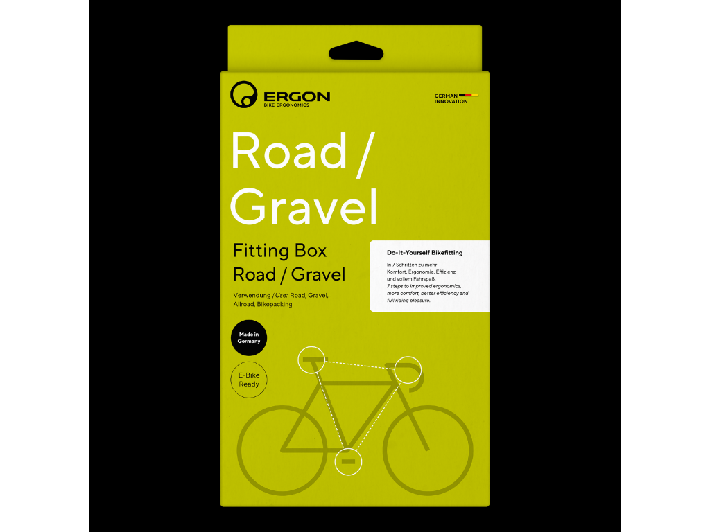 Jak dostat ze silničky nebo gravelu maximum? Správně nastavené tři kontaktní body: sedlo, řídítka a pedály. ERGON Fitting Box Road / Gravel od Ergon ti umožní přesné a systematické nastavení kola podle tvé postavy – bez nutnosti předchozích zkušeností.