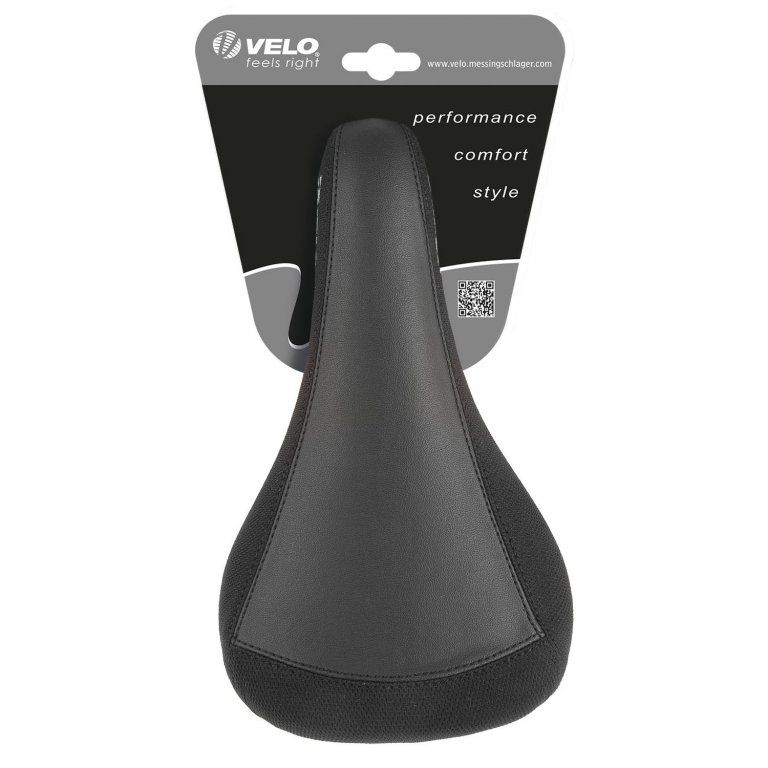 Designové sedlo BMX s výztuhou v zadní a postranní částiRozměry: 247 x 137 mmHmotnost: 385 gVzpěry ocelové černé, bez zámku sedlaBarva. černáBalení: originální karta VELO