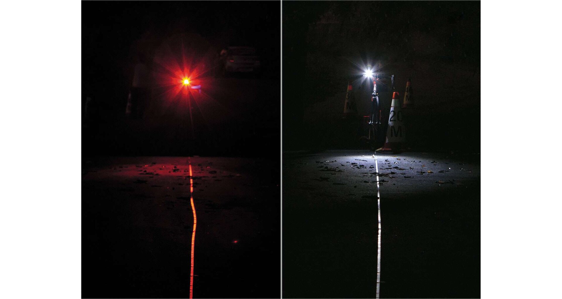 Oboustranný výkon: Dvě bílé LED diody směřující vpřed a dvě červené směřující vzad zajišťují komplexní pokrytí prostoru kolem vás.