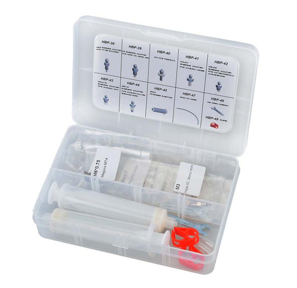 Univerzální plnící sada pro Avid ( Elixir, Juicy), Hayes ( Stroker, Ryde, Sole, El Camino) , Magura ( Louise, MT4), Formula ( The one), Shimano, Hope( Hope X2, Mono Mini)