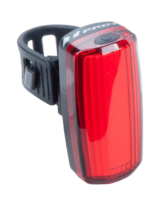 Cob červené diody, 2 intenzity svícení (100%,50%), 1x blikání, baterie 2xAAA (přiloženy), vodotěsné IPX3, na průměr 22,2-31,8mm