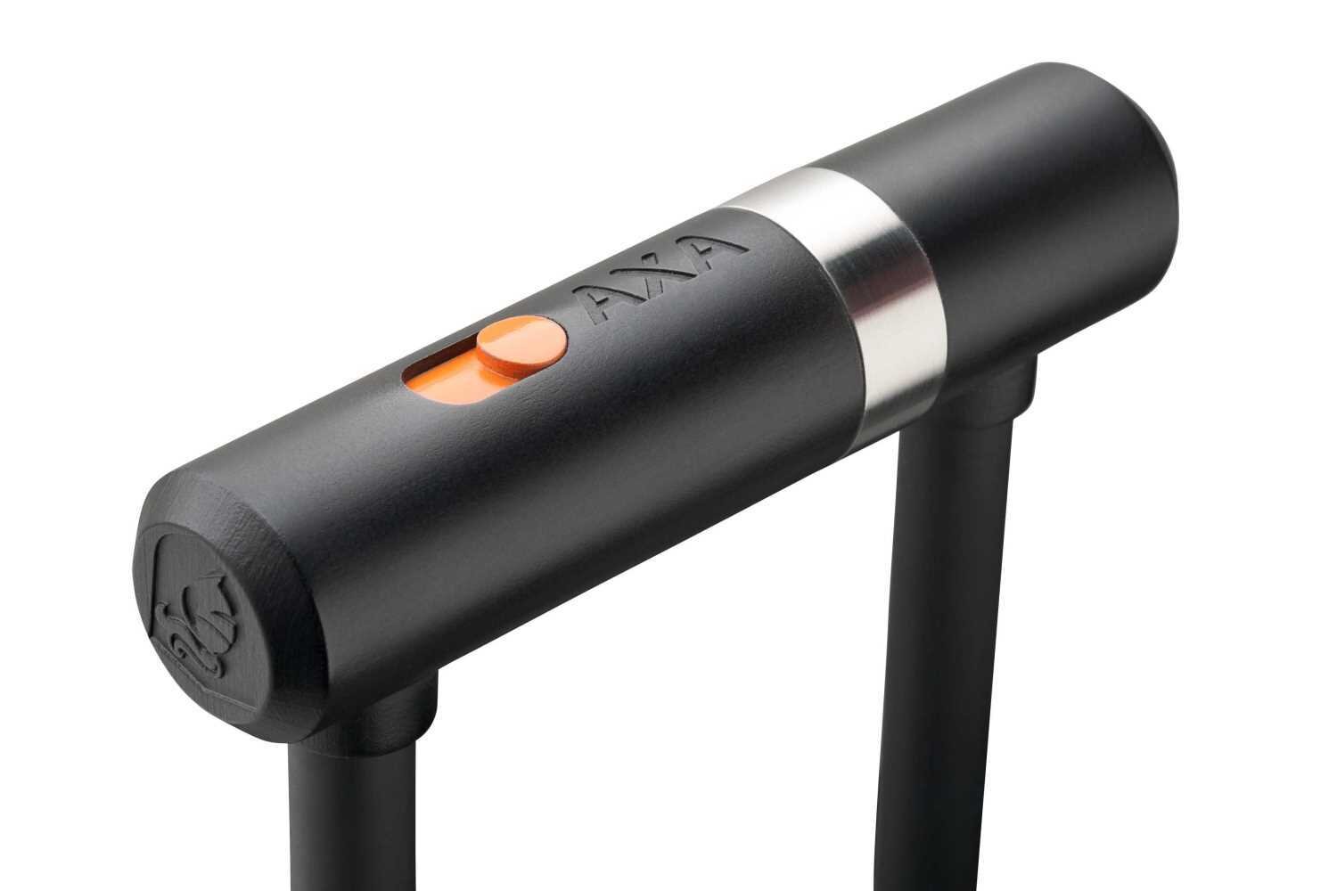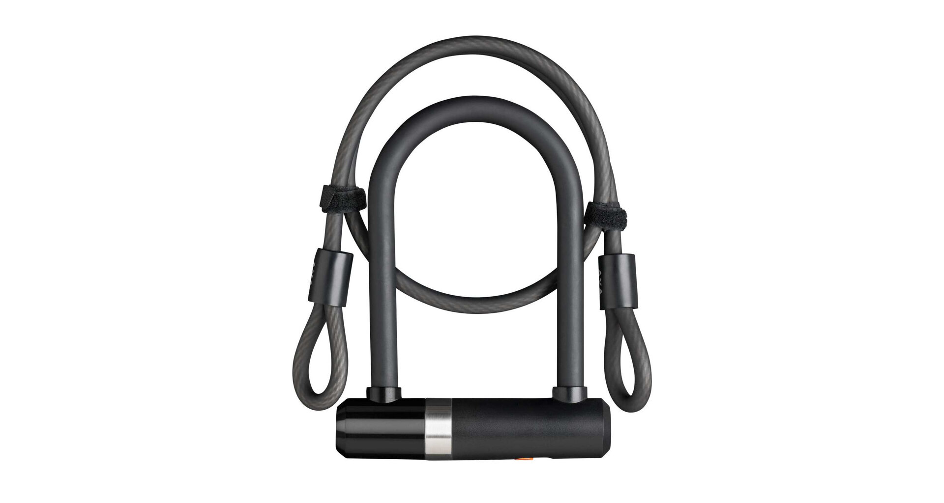 Kombinace U zámku a bezpečnostního kabelu. Vnitřní délka U pouta je 15cm, ale díky kabelu se smyčkami na koncích lze varibilitu zabezpečení značně rozšířit.